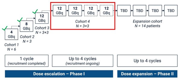 Cohort 4 is the first to explore the safety and anti-cancer effects of multiple therapy cycles of 67Cu-SAR-bisPSMA at the highest dose of 12GBq. This is the last cohort of the dose escalation phase,before the trial advances into its Phase II stage (cohort expansion) in 14 participants,pending safety evaluation.