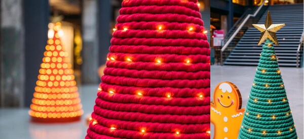 Upcycled Yarn Christmas Trees embody The Mills' spirit of sustainability