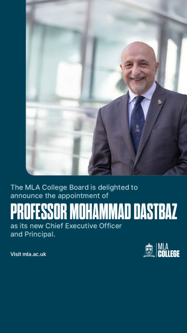 LONDON,April 15,2025 --The MLA College Board is delighted to announce the appointment of Professor Mohammad Dastbaz as its new Chief Executive Officer and Principal.