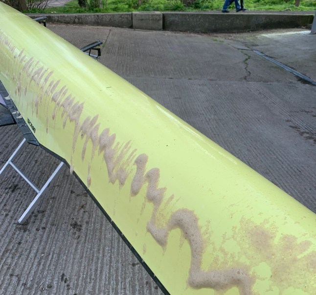 Brown scum on the bow of the boat at the end of a row (Picture: Supplied)