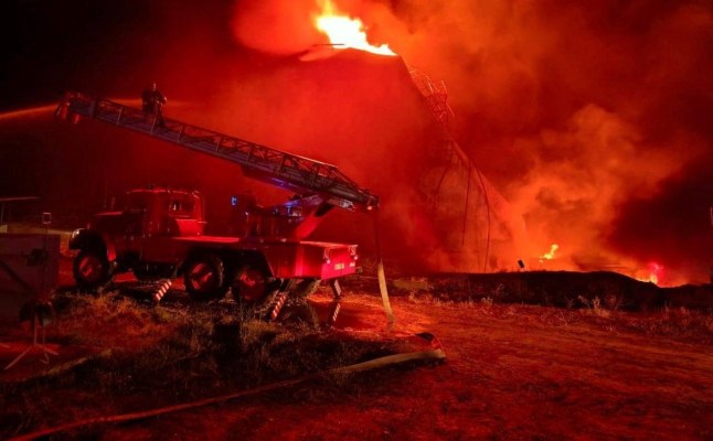 Firefighters work at the site of a fuel storage facility hit by a Russian drone strike on the southern Ukrainian region of Odesa (Picture: Reuters)