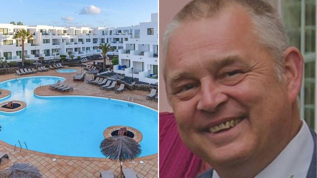Father-of-two Darren Silcox,56,was one of two men who fell into the atrium stairwell while on a family holiday at Galeon Playa Apartments in Lanzarote.
